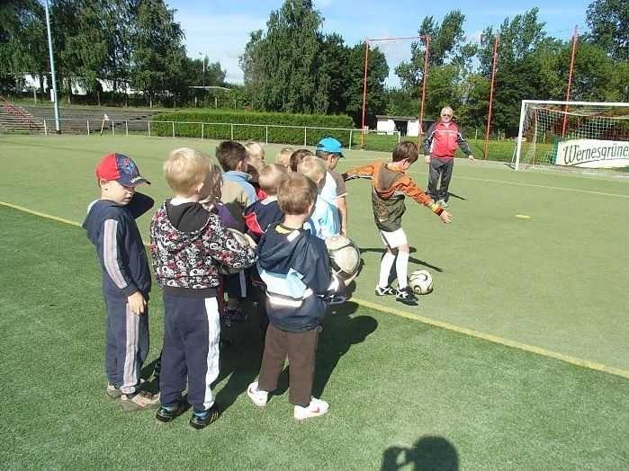 Um begeisterte Jungen und Mädchen bereits frühzeitig an die Sportart Fußball heranzuführen, veranstaltet der SV Motor Zwickau-Süd regelmäßig Schnuppertrainings für die Kinder der Kitas in Neuplanitz. Am Mittwoch Vormittag, den 08.09.2010 war dies wiedereinmal der Fall, wobei die Kids unter Anleitung der Nachwuchstrainer Heinz Neugebauer und Peter Kotscha trainieren konnten.